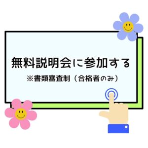 合否の審査をさせていただき、合格された方のみ、無料説明会にご参加いただけます。